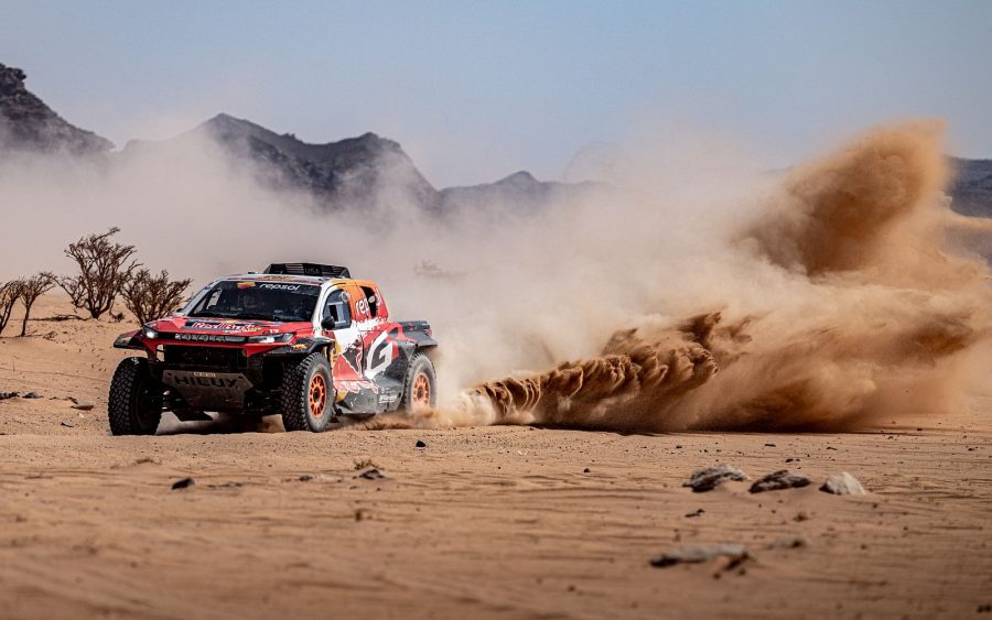 As a result of their mid-place finishes the day before, Toyota’s three Hilux prototypes started in the middle of the Ultimate class pack – an unplanned bonus that allowed them to avoid some of the inherent risks of opening the stage. Needless to say, the crews took advantage of this and aimed to recover significant time on their rivals.