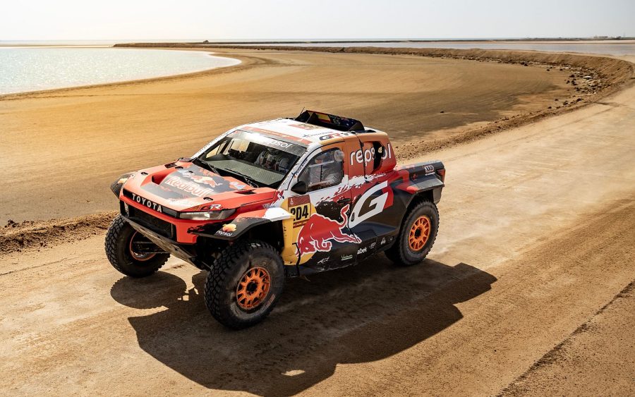 Prologue: The opening stage was a flat-out 13.5-mile sprint around the Dakar Rally’s start-finish point at the Red Sea. Crews were tasked with climbing through desert sand before descending over rocky terrain to reach the chequered flag. Aware that this was only the start of a fortnight of tough competition, Toyota’s works crews decided on a measured approach.