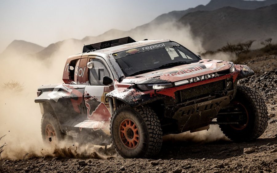 Stage 2: A later starting position – and therefore a cleaner route – gave the Toyota crews an opportunity to dominate this 250-mile stage in their new Hilux prototypes. Which indeed they did, capturing three of the top four positions. Interestingly, by the end of the day, GR Hilux prototypes earned a clean sweep of the top five positions.